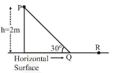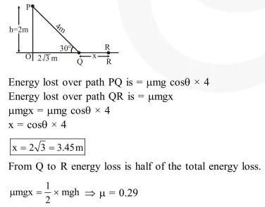 A point particle of mass, moves along the uniformly rough track PQR as shown in the figure. The coefficient of friction, between the particle and the rough track equals $\mu$. The particle is released, from rest, from the point $\mathrm{P}$ and it comes to rest at a point $\mathrm{R}$. The energies, lost by the ball, over the parts, PQ and PR, of the track, are equal to each other, and no energy is lost when particle changes direction from $\mathrm{PQ}$ to $\mathrm{QR}$. The values of the coefficient of friction $\mu$ and the distance $x(=\mathrm{QR})$ are, respecitvely close to :