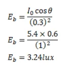 A point source emitting light uniformly in all directions is placed $60 \mathrm{~cm}$ above a table-top. The illuminance at a point on the table-top, directly below the source, is $15 l u x$. Find the illuminance at a point on the tabletop $80 \mathrm{~cm}$ away from the first point.