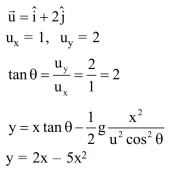 A projectile is given an initial velocity of $(\hat{\mathrm{i}}+2 \hat{\mathrm{j}}) \mathrm{m} / \mathrm{s}$, where $\hat{\mathrm{i}}$ is along the ground and $\hat{\mathrm{j}}$ is along the vertical. If $g=10 \mathrm{~m} / \mathrm{s}^{2}$, the equation of its trajectory is :