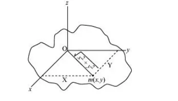 Moment of inertia about z-axis, $I_{z}=m\left(\sqrt{x^{2}+y^{2}}\right)^{2}$