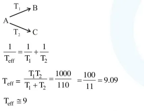 A radioactive nucleus decays by two different processes. The half life for the first process is $10 \mathrm{~s}$ and that for the second is $100 \mathrm{~s}$. the effective half life of the nucleus is close to: