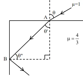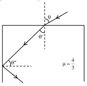 $1 \times \sin \theta=\frac{4}{3} \times \sin \theta^{\prime}$