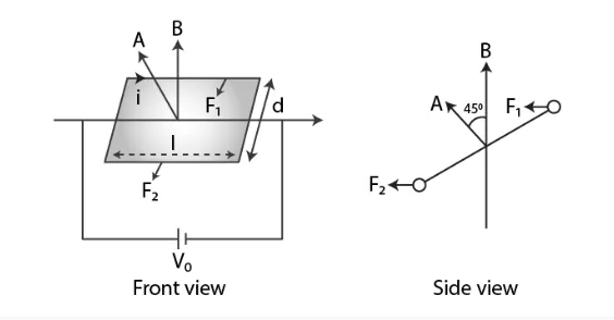 to a constant voltage source Vo. The loop is placed in uniform a magnetic field B at 45oto its plane. Find τ, the torque exerted by the magnetic field on the loop