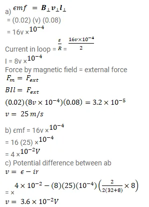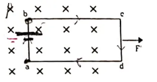 A rectangular frame of wire abcd has dimensions $32 \mathrm{~cm} \times 8.0 \mathrm{~cm}$ and a total resistance of $2.0 \Omega$. It is pulled out of a magnetic field $B=0.020 \mathrm{~T}$ by applying a force of $3.2 \times 10^{-5} \mathrm{~N}$. It is found that the frame moves with constant speed. Find