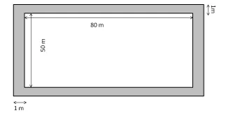 A rectangular ground 80 m × 50 m has a path 1 m wide outside around it. The area of the path is