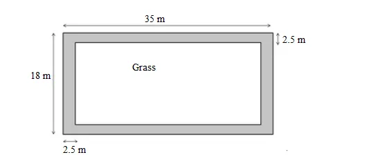A rectangular park 35 m long 18 m wide is to be covered with grass, leaving 2.5 m uncovered all around it.