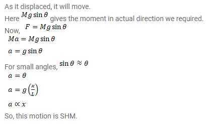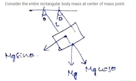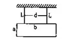 A rectangular plate of sides $a$ and $b$ is suspended from a ceiling by two parallel strings of length $L$ each. The separation between the strings is $d$. The plate is displaced slightly in its plane keeping the strings tight. Show that it will execute simple harmonic motion. Find the time period.