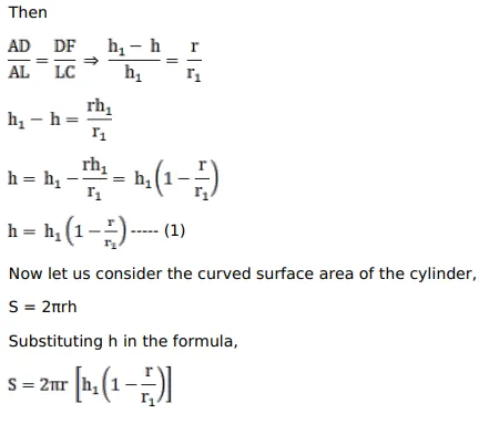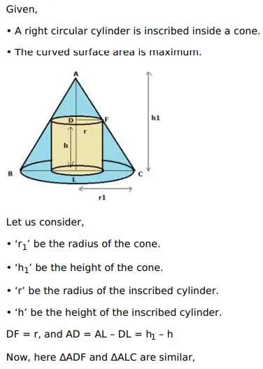 A right circular cylinder is inscribed in a cone. Show that the curved surface area of the cylinder is maximum when the diameter of the cylinder is equal to the radius of the base of the cone.
