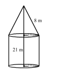 A rocket is in the form of a circular cylinder closed at the lower end and a cone of the same radius is attached to the top. The radius of the cylinder is 2.5 m, its height is 21 m and the slant height of the cone is 8 m. Calculate the total surface area of the rocket.