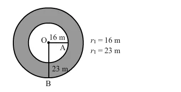$=\pi\left(23^{2}-16^{2}\right)$
