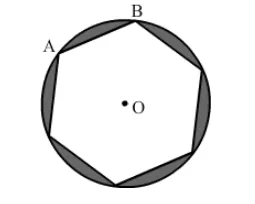 Total area of the design = Area of the circle $-$ Area of six triangles