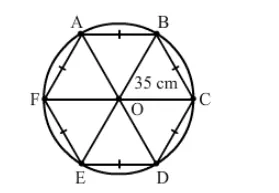 A round table cover has six equal designs as shown in the given figure. If the radius of the cover is 35 cm, then find the total area of the design.