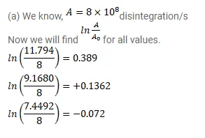 (a) Plot In $\left(\mathrm{A} / \mathrm{A}_{0}\right)$ versus time.