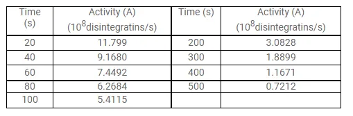 (c) Use the half-life of ${ }^{110} \mathrm{Ag}$ to calculate the activity corresponding to ${ }^{106} \mathrm{Ag}$ in the first $50 \mathrm{~s}$.