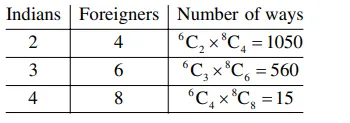 A scientific committee is to be formed from 6 Indians and 8 foreigners, which includes at least 2 Indians and double the number of foreigners as Indians. Then the number of ways, the committee can be formed, is :