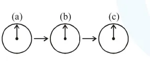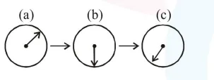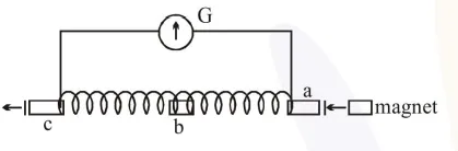 Three positions shown describe: (a) the magnet's entry (b) magnet is completely inside and (c) magnet's exit.