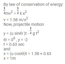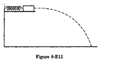 A small block of mass $100 \mathrm{~g}$ is pressed against a horizontal spring fixed at one end to compress the spring through $5.0 \mathrm{~cm}$ (figure 8-E11). The spring constant is $100 \mathrm{~N} / \mathrm{m}$. When released, the block moves horizontally till it leaves the spring. Where will it hit the ground $2 \mathrm{~m}$ below the spring?