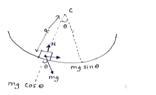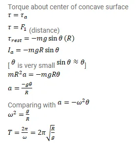 A small block oscillates back and forth on a smooth concave surface of radius R. Find the time period of small oscillation.