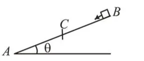 A small block starts slipping down from a point $B$ on an inclined plane $A B$, which is making an angle $\theta$ with the