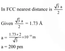 A solid has 'bcc' structure. If the distance of nearest approach between two atoms is 1.73