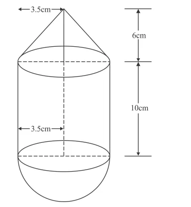 Hence the total surface area of the solid is $S=373.408 \mathrm{~cm}^{2}$