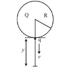 or, $V^{2}=2 y\left[\frac{q Q}{4 \pi \varepsilon_{0} R(R+y) m}+g\right]$