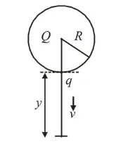 $\Rightarrow V^{2}=2 g y+\frac{2 k Q q}{m} \frac{y}{R(R+y)}$