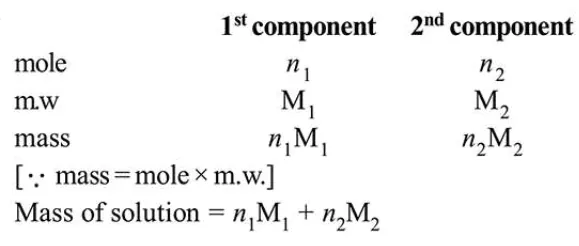 Mole fraction of the $2^{\text {nd }}$ component $\left(x_{2}\right)=\frac{n_{2}}{n_{1}+n_{2}}$