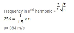 A sonometer wire having a length of $1.50 \mathrm{~m}$ between the bridges vibrates in its second harmonic resonance with a tuning fork of frequency $256 \mathrm{~Hz}$. What is the speed of the transverse wave on the wire?