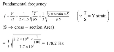 A sonometer wire of length $1.5 \mathrm{~m}$ is made of steel. The tension in it produces an elastic strain of $1 \%$. What is the fundamental frequency of steel if density and elasticity of steel are $7.7 \times 10^{3} \mathrm{~kg} / \mathrm{m}^{3}$ and $2.2 \times 10^{11} \mathrm{~N} / \mathrm{m}^{2}$ respectively ?