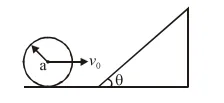 A sphere of radius ' $a$ ' and mass ' $m$ ' rolls along a horizontal plane with constant speed $v_{0}$. It encounters an inclined plane at angle $\theta$ and climbs upward. Assuming that it rolls without slipping, how far up the sphere will travel ?