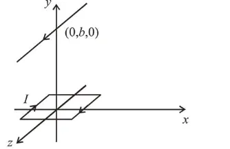 $=\frac{\mu_{0} I^{2} a}{\pi \sqrt{b^{2}+a^{2}}} \times \frac{b}{\sqrt{b^{2}+a^{2}}} \times 2 a$