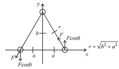 Force, $F=\frac{\mu_{0} I^{2} a}{\pi \sqrt{b^{2}+a^{2}}}$