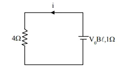 $\mathrm{i}=\frac{\mathrm{V}_{0} \mathrm{~B} \ell}{4+1} \Rightarrow \mathrm{V}_{0}=\frac{5(2 \mathrm{~mA})}{5 \times .2}=10^{-2} \mathrm{~m} / \mathrm{s}=1 \mathrm{~cm} / \mathrm{s}$