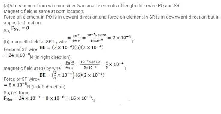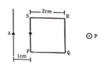 A square loop PQRS carrying a current of $6.0 \mathrm{~A}$ is placed near a long wire carrying $10 \mathrm{~A}$ as shown in figure. (a) Show that the magnetic force acting on the part $P Q$ is equal and opposite to that on the part Rs. (b) Find the magnetic force on the square loop.