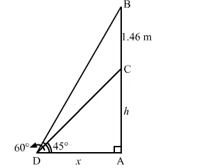 $\Rightarrow h=\frac{1.46}{(\sqrt{3}-1)}=\frac{1.46}{0.73}=2 \mathrm{~m}$