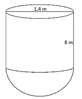 Therefore radius of cylinder = 1.42 = 0.7 m