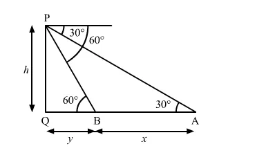 Let $\mathrm{PQ}=h, \mathrm{AB}=x$ and $\mathrm{BQ}=y$
