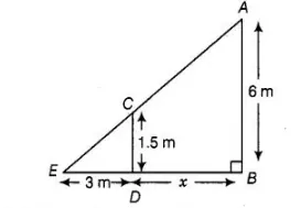 Let A be the position of the street bulb fixed on a pole AB = 6 m and CD = 1.5 m be the height of a woman and her shadow be ED = 3 m. Let