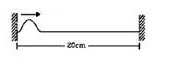 A string of length $20 \mathrm{~cm}$ and linear mass density $0.40 \mathrm{~g} / \mathrm{cm}$ is fixed at both ends and is kept under a tension of $16 \mathrm{~N}$. A wave pulse is produced at $t=0$ near an end as shown in figure. Which travels towards the other end.