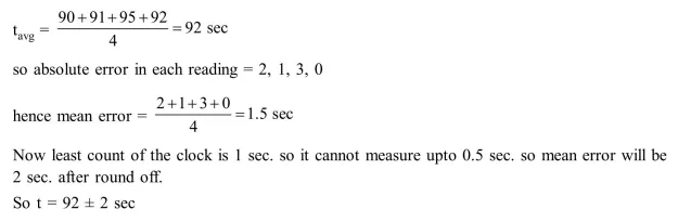 A student measures the time period of 100 oscillations of a simple pendulum four times. The data set is $90 \mathrm{~s}, 91 \mathrm{~s}, 95 \mathrm{~s}$ and $92 \mathrm{~s}$. If the minimum division in the measuring clock is $1 \mathrm{~s}$, then the reported mean time should be :-