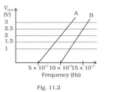 (ii) Given the electric charge of an electron = 1.6 × 10–19 C, find the value of h obtained from the experiment for both A and B. Comment on whether it is consistent with Einstein’s theory