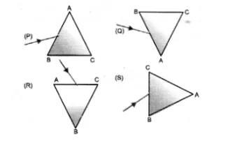 prism ABC with BC as base as shown in figures P, Q, R and S. Which position of the prism is correct ?