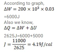 A substance is taken through the process abc as shown in figure (26-E7). If the internal energy of the substance increases by $5000 \mathrm{~J}$ and a heat of $2625 \mathrm{cal}$ is given to the system, calculate the value of J.