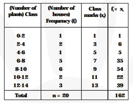 $\overline{\mathbf{x}}=\frac{\mathbf{1}}{\mathbf{n}} \times \Sigma \mathrm{f}_{\mathrm{i}} \mathrm{x}_{\mathrm{i}}=\frac{\mathbf{1}}{\mathbf{2 0}} \times 162=8.1$