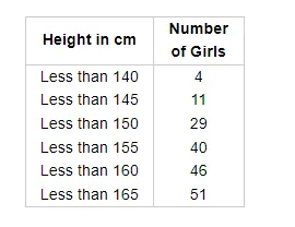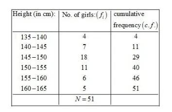 A survey regarding the height (in cm) of 51 girls of class X of a school was conducted and the following data was obtained: