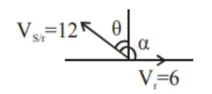 A swimmer can swim with velocity of $12 \mathrm{~km} / \mathrm{h}$ in still water. Water flowing in a river has velocity $6 \mathrm{~km} / \mathrm{h}$. The direction with respect to the direction of flow of river water he should swim in order to reach the point on the other bank just opposite to his starting point is - (Round off to the Nearest Integer) (find the angle in degree)