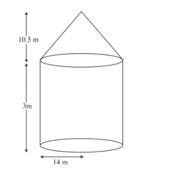 A tent is of the shape of a right circular cylinder upto a height of 3 metres and then becomes a right circular cone with a maximum height of 13.5 metres above the ground. Calculate the cost of painting the inner side of the tent at the rate of Rs 2 per square metre, if the radius of the base is 14 metres.
