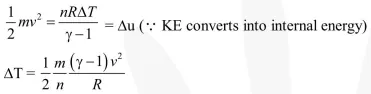A thermally insulated vessel contains an ideal gas of molecular mass $M$ and ratio of specific heats $\gamma$. It is moving with speed $v$ and is suddenly broght to rest. Assuming no heat is lost to the surroundings, its temperature increases by :-