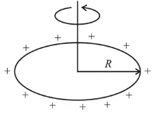 or $3.8 \times 10^{-9}=\left(\frac{\mu_{0}}{4 \pi}\right) \frac{q \omega}{R}=\left(10^{-7}\right) \frac{q \times 40 \pi}{0.10}$